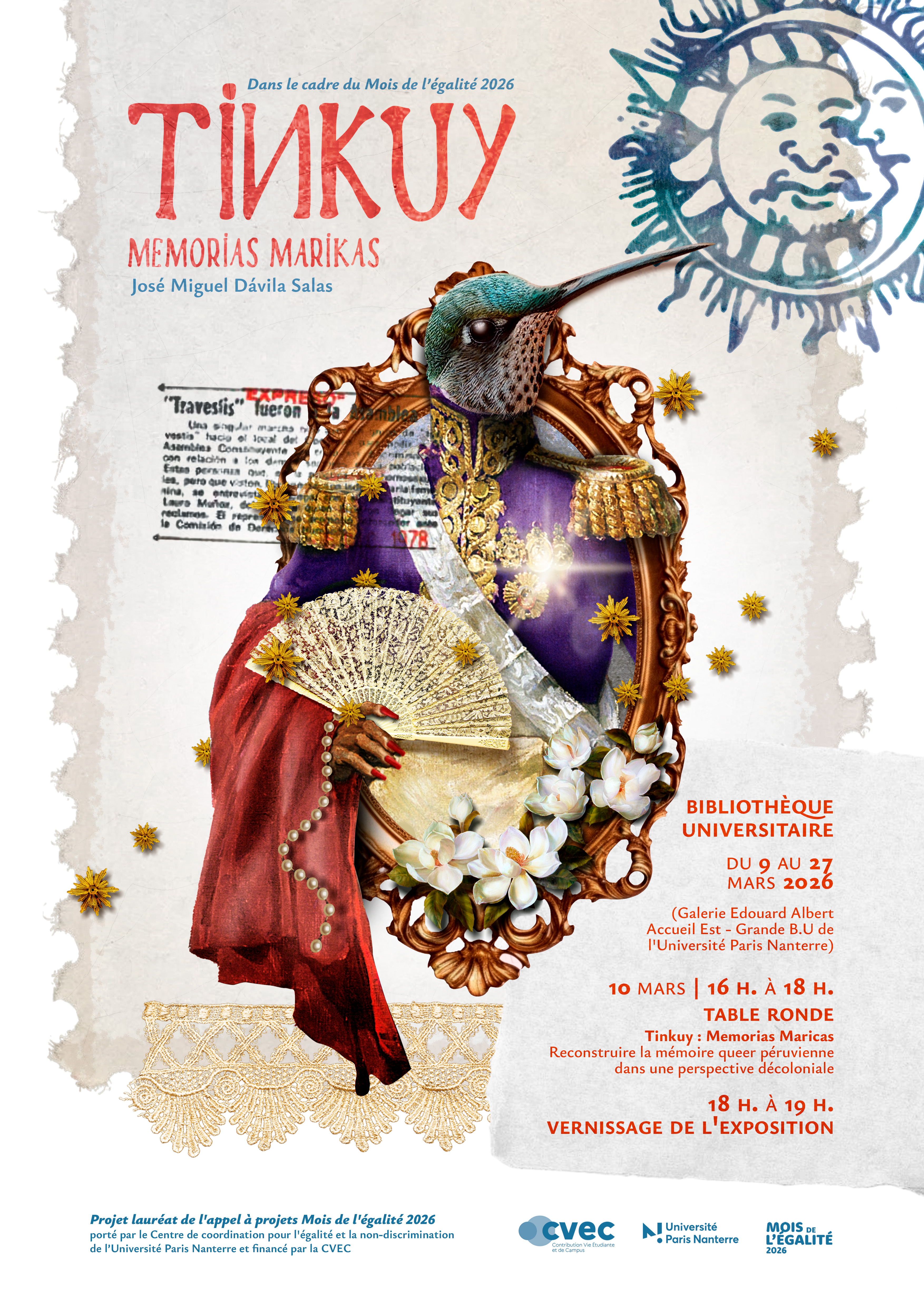 Le mardi 10 mars à 16h, pour l'inauguration de cette exposition, la table ronde "Tinkuy, memorias maricas. Reconstruire la mémoire queer péruvienne dans une perspective décoloniale" constituera un espace de dialogue interdisciplinaire autour des enjeux soulevés par le projet. Elle réunira :