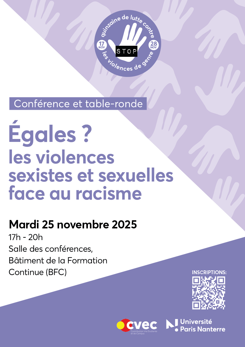 Événement dans le cadre de la Quinzaine de lutte contre les violences de genre organisée par le CCEND de l’Université Paris Nanterre et financé par lebudget CVECde l'université.